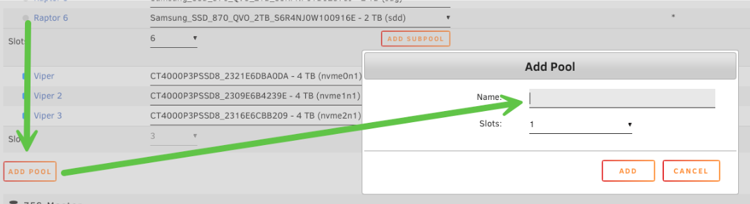 1. Klicken Sie auf den Pool-Namen (z.B. raptor), um den Konfigurationsbildschirm zu öffnen.